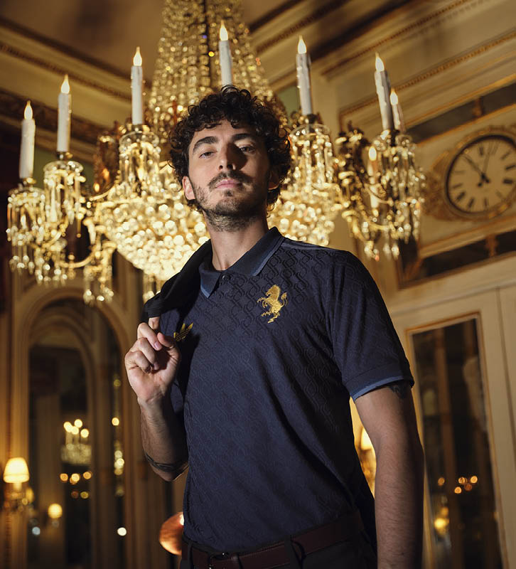エレガントなポロ襟が特徴で、バックネックにはゴールドの「Juventus」のサインを配しています。