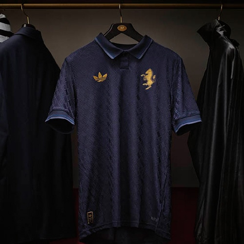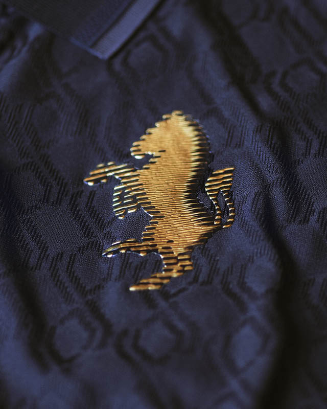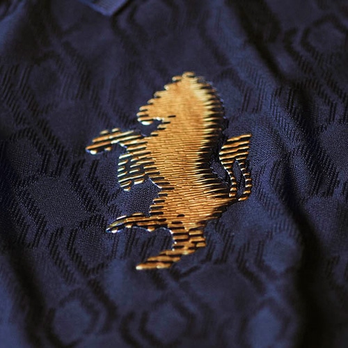 クラブのエンブレムは、世界的に有名なユベントスの跳ね馬をゴールドのシルエットに置き換えています。