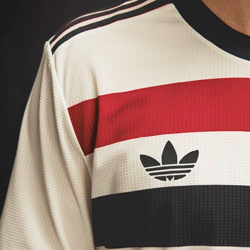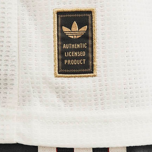 アイコニックなトレフォイルロゴが相まって、トラディッショナルとモダンなスタイルが調和した唯一無二のユニフォームに仕上げています。