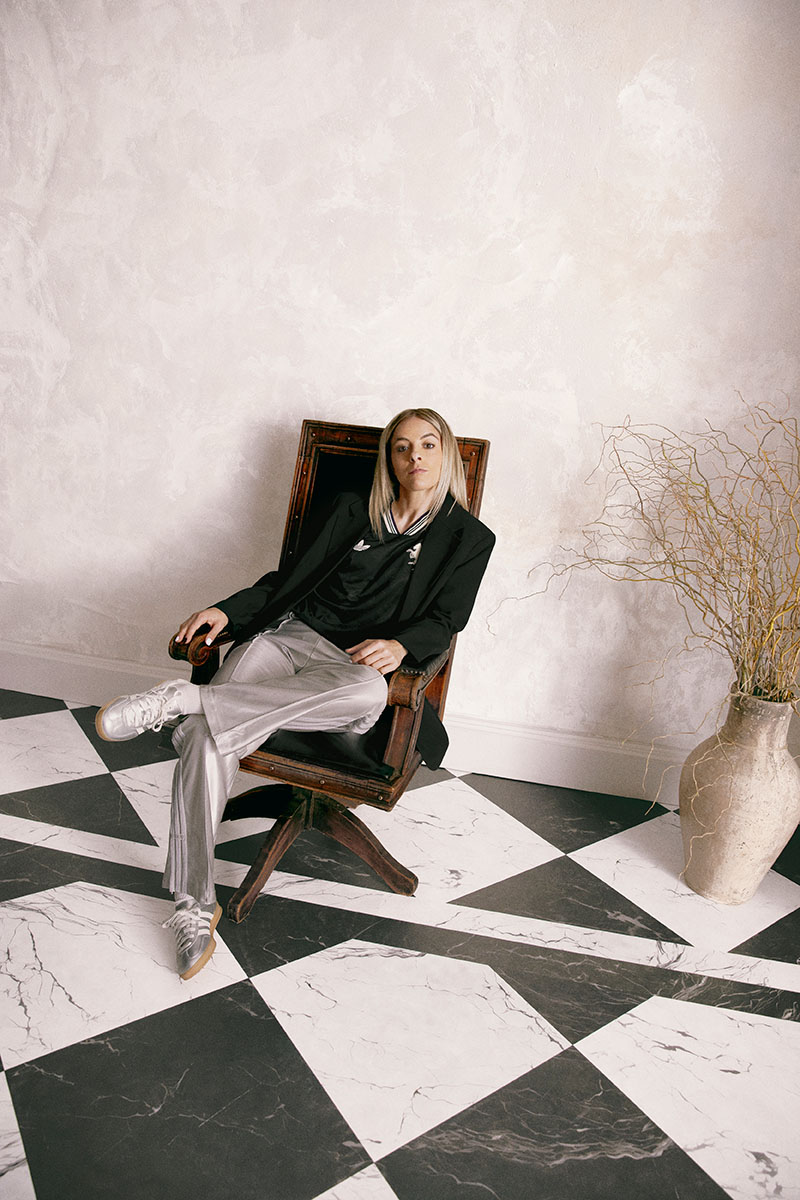 一際目立つトレフォイルとクラシックなクラブバッジを配置。