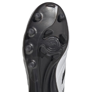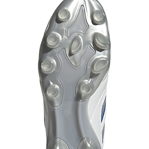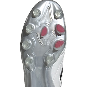 ハードグラウンドでの最適なグリップ性、耐久性に貢献。前足部内側のピヴォットスタッド(3本のトライアングルスタッドが円形記置)設定により、前後左右へのモーションやターンを行いやすい。