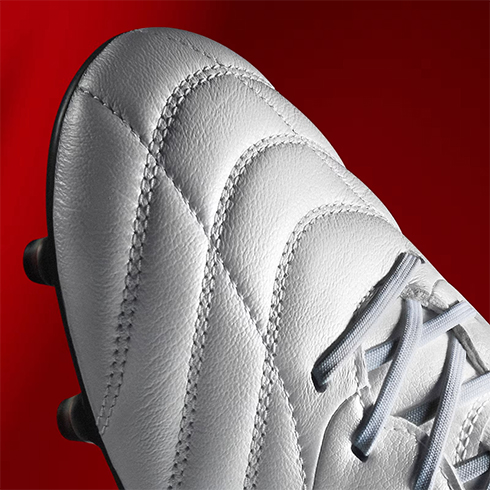 柔らかな天然皮革を前足部とシュータンに採用。足全体の馴染みが早く、素足感覚のフィーリングを得ることができ、より精度の高いボールタッチに貢献。