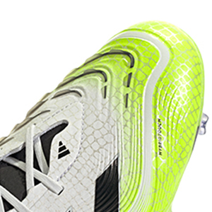 前足部内側のトライアングルスタッドが円形配置設定により、前後左右へのモーションやターンに貢献。