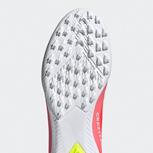 人工芝やハードグラウンドなど、様々なグラウンドでのトラクションを高めるためのスタッドデザインを採用。スピードを高めるアウトソール形状。