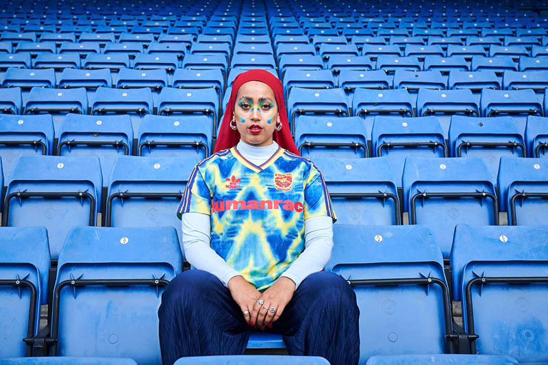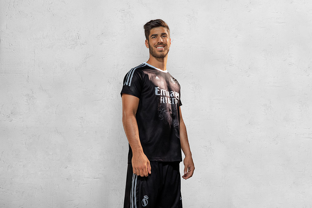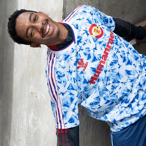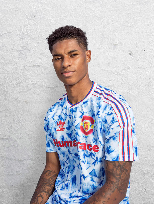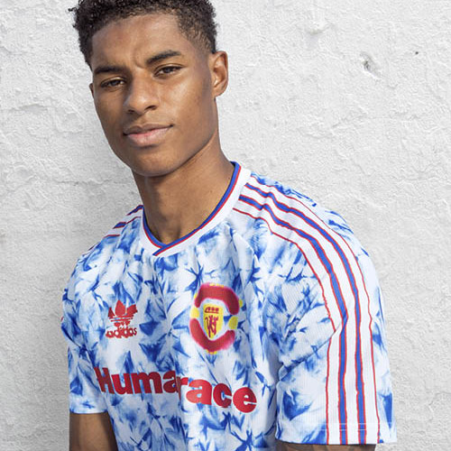 青と白のスノーフレーク柄からインスピレーションを得て、1990~92年のアウェイユニフォームを手描きで再構築。
