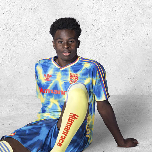 1992~93年に着用され、ファンから“傷んだバナナ”と呼ばれ話題となったアイコニックなデザインが手描きデザインで登場。