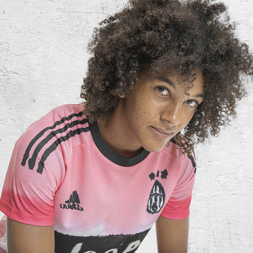 現代のストリートシーンに向けて、2015~16年に着用したピンク色のユニフォームを手描きのデザインで再構築。