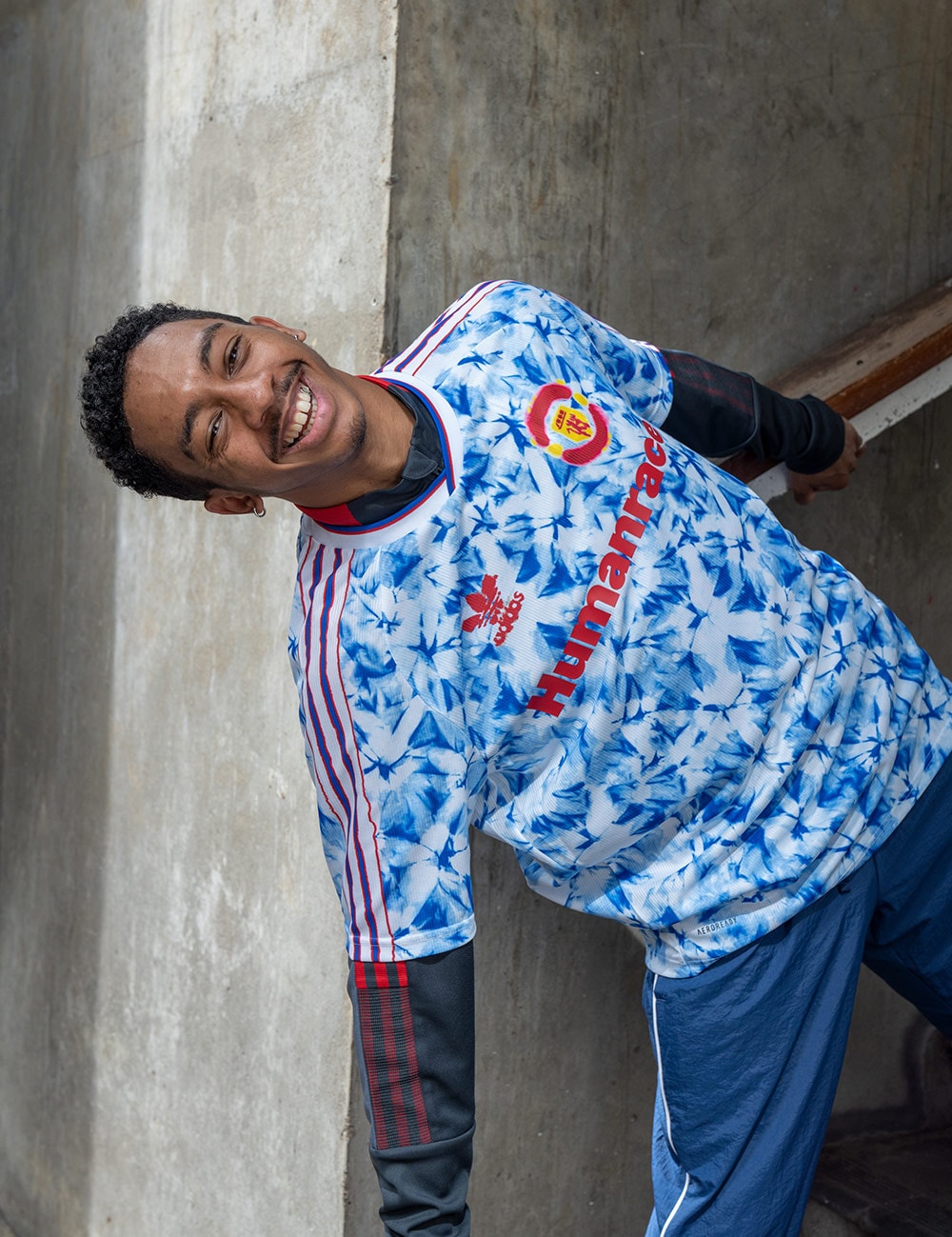 プライドと勝利、そしてストリートスタイルの融合を「M」の文字のレイヤーデザインとグレインエフェクトを効かせたプリントで表現。