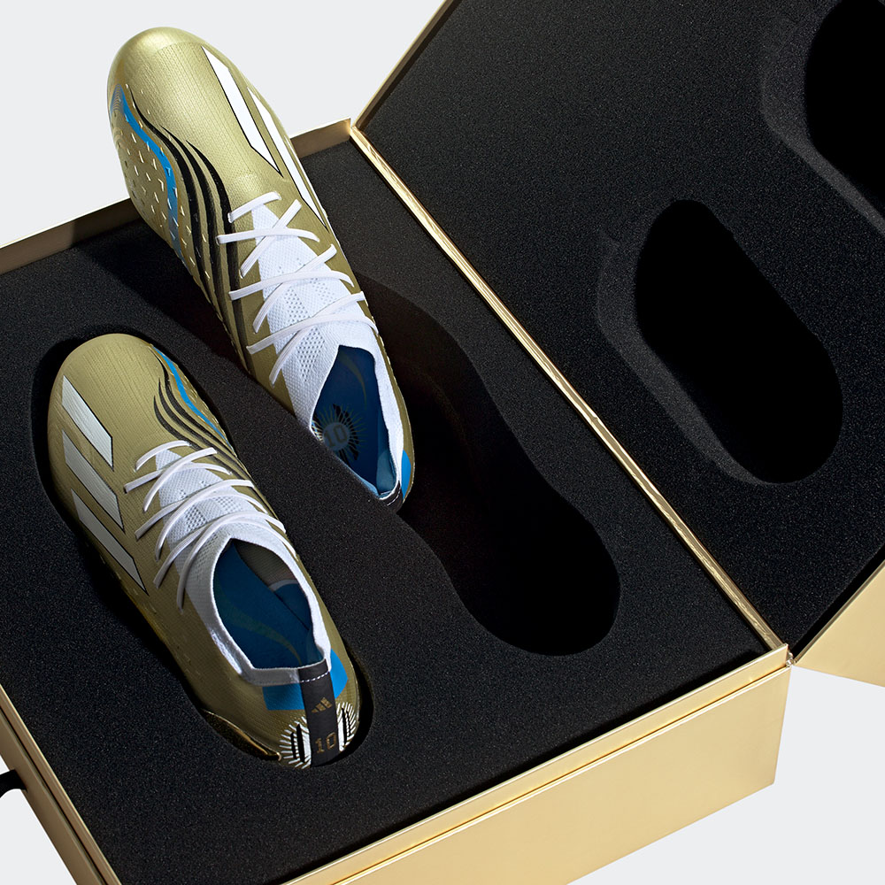 彼が初めて2006年の大会で履いたスパイクからインスピレーションを得た、金色に輝く「adidas PRIMEKNIT アッパー」を搭載。 軽量の「Speedframeアウトソール」の上には、バネのように弾む「Carbitexカーボンファイバーインサート」を挿入。 彼の母国が目指す、世界タイトルのハットトリックを後押しするだろう。