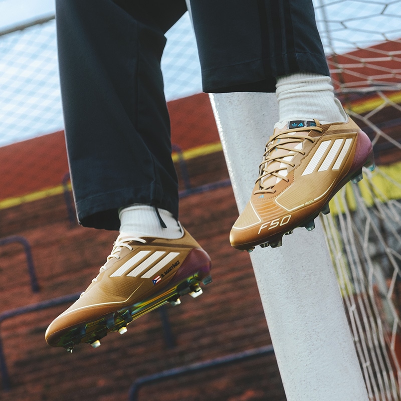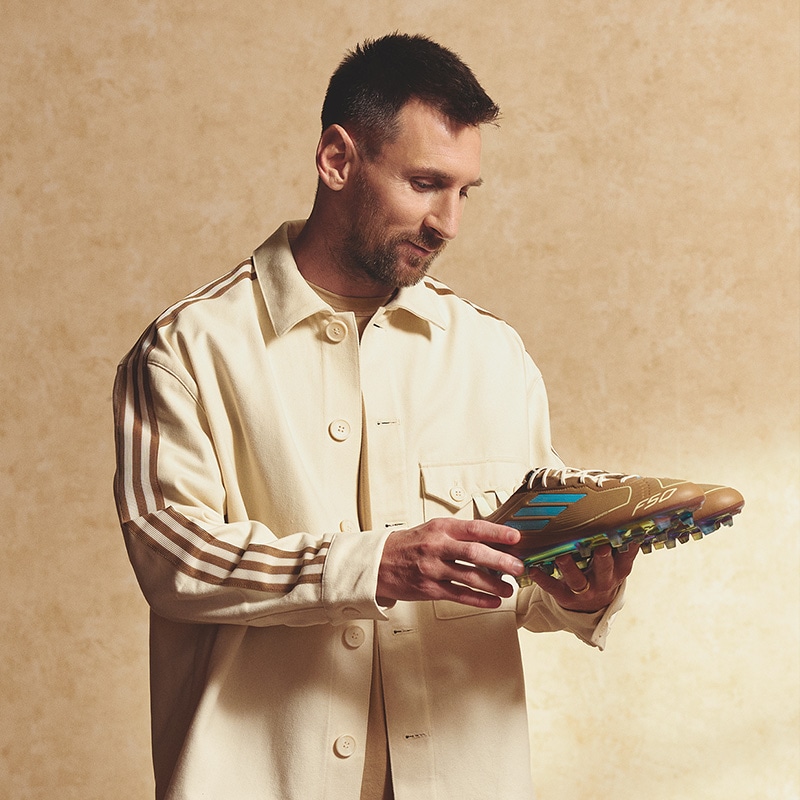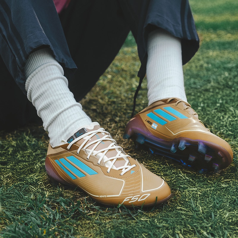 互いをリスペクトし合う関係から生まれたメッシとバッド・バニーとのコラボレーション。 「F50」の限定スパイクが登場。 左から見た時と右から見た時でスリーストライプのカラーが異なるデザイン。