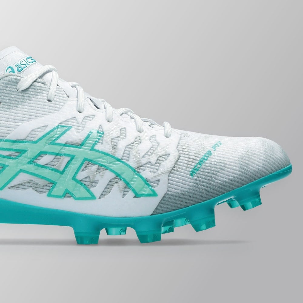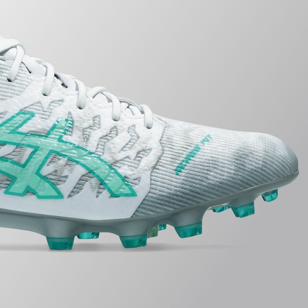 デジタル設計により、大胆にくり抜かれたアウターソールが、屈曲性と軽量性を生み出す。より足と一体化することで、ピッチに力を伝え、加速をサポートする。