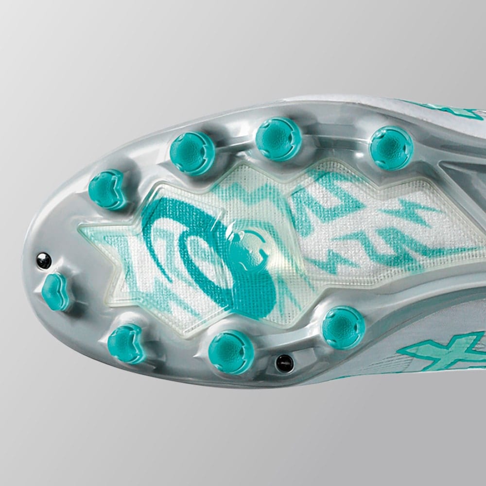 多くのフットボールプレーヤーが愛用する外付けヒールカウンター搭載のソール。フラットな接地感と適度な反発性が特徴。グリップ力を発揮しつつ、スタッドの抜け感も良いバランスのとれたソール。