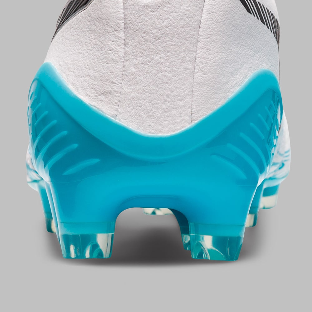 外付けのヒールカウンターがかかとをしっかりホールドし、安定性を発揮。ボールを止める、蹴るといった基本動作を支え正確なプレーをサポート。