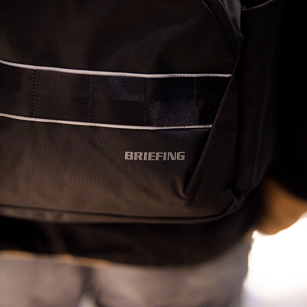 ●フロントに配したBRIEFINGロゴはリフレクターを採用。夜間の移動では、リフレクター部分が反射し、視認性に優れる。