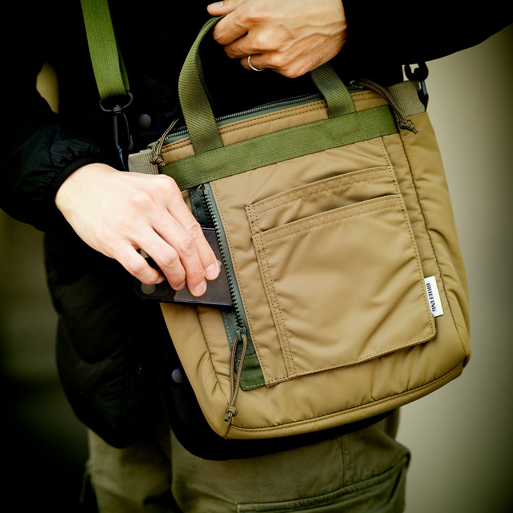 『BRIEFING(ブリーフィング)』のDNAを継承しつつ、新たな解釈、試みでデザインを再構築したシリーズのショルダーバッグ。気軽に持ち運べるA5サイズです。
