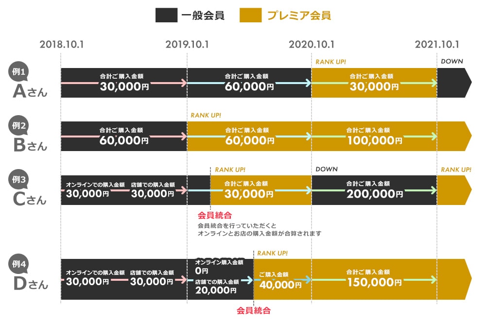 2019年10月1日以降に会員登録を行った方、会員統合をされた方に適用されます。