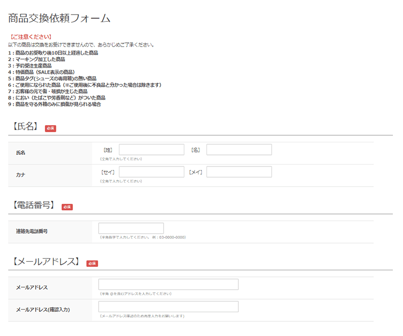 [お客様] 商品交換依頼フォームより交換希望のご連絡