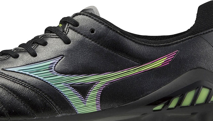 中足部にカンガルーレザーに匹敵する柔らかさで足馴染みの良いマイクロファイバー人工皮革「BF(Bare Foot=素足)レザー」を採用。モレリアネオ史上、最も研ぎ澄まされた素足感覚を実現。