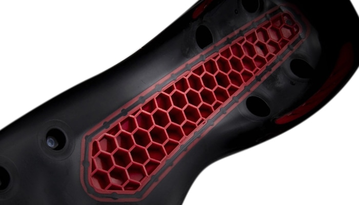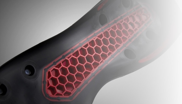 軽量性とシャンク剛性を確保するために、ソールシャンク内側にハニカム構造を採用。ソールは旧モデルに比べて約5gの軽量化を達成。
