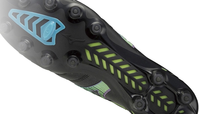後足部スタッドと前足部最後列スタッドの耐摩耗性アップ。後足部スタッドは旧モデルに比べて約1.5倍の耐久性向上を実現。
