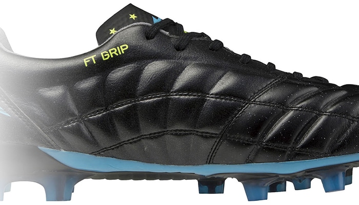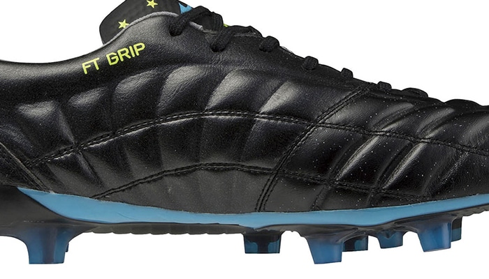 中足部のマイクロファイバー人工皮革にはファーストタッチをサポートする「FTグリップ」を搭載。 前作「レビュラ3 JAPAN」に比べてボールグリップ性が約1.3倍向上。
