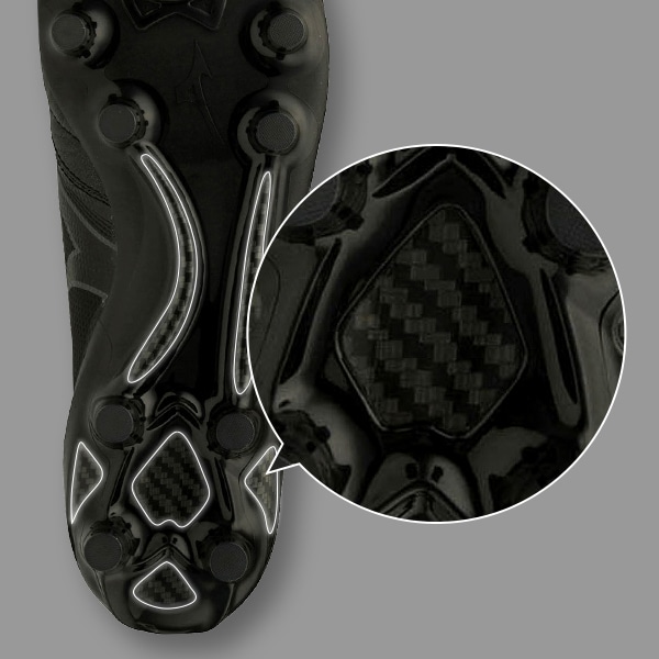 アウトソールの中底部分、シャンク部分(前足部と後足部の連結部分)に軽量で弾力性が強い素材「カルヴォ(R)」を採用。これにより、定番モデルの「MORELIA NEO U」と比べ、強度を高めつつ、軽量化と反発性が向上。