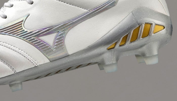 中足部にカンガルーレザーに匹敵する柔らかさで足馴染みの良いマイクロファイバー人工皮革「BF(Bare Foot=素足)レザー」を採用。モレリアネオ史上、最も研ぎ澄まされた素足感覚を実現。