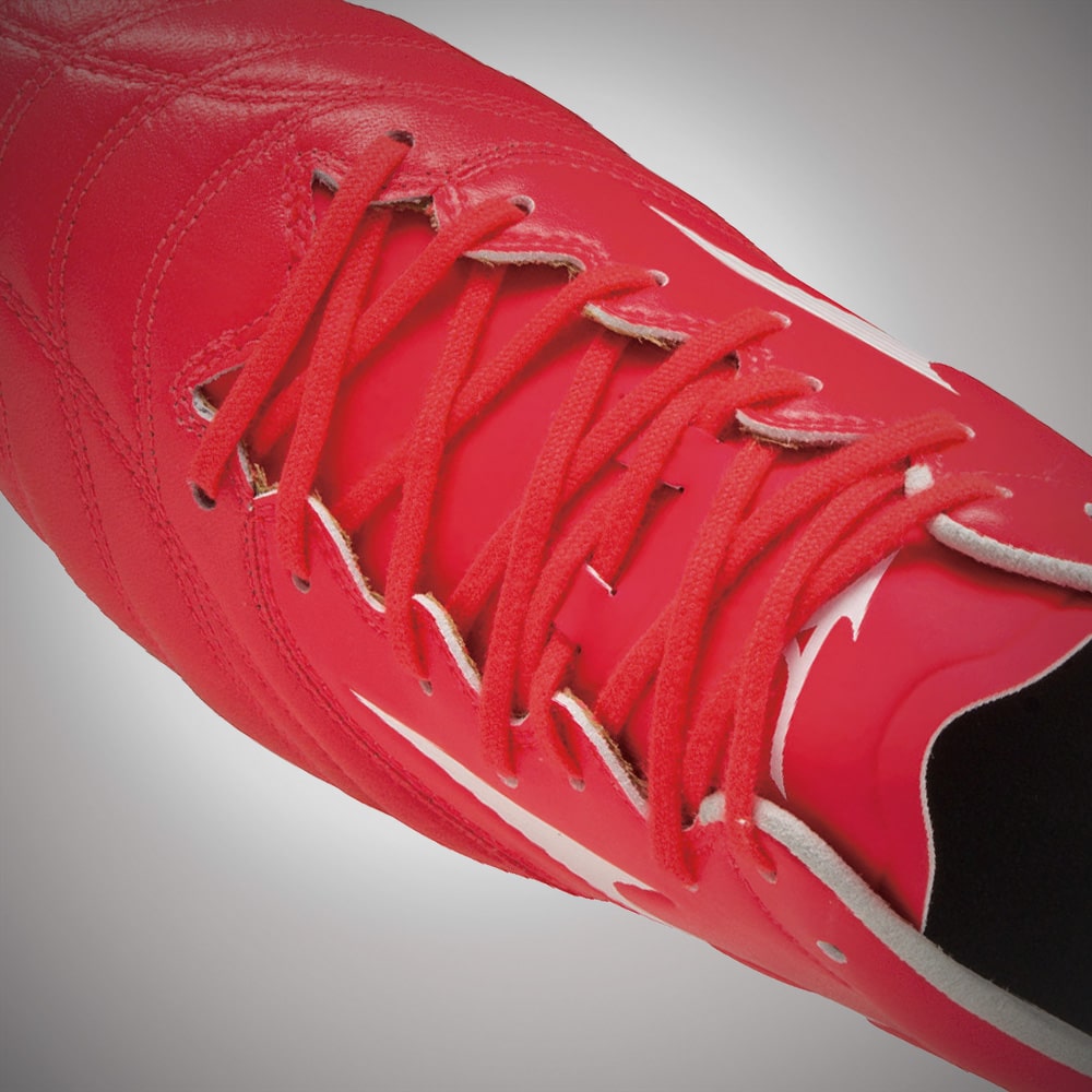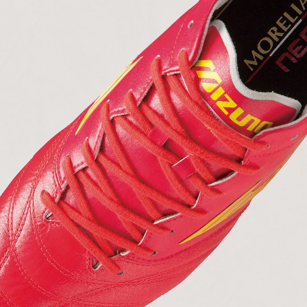 "MORELIA NEO Ⅳ JAPAN"と全く同じ素材の4mm幅シューレースを採用。別売りのZGシューレース 4mm幅への付け替えも可能。
