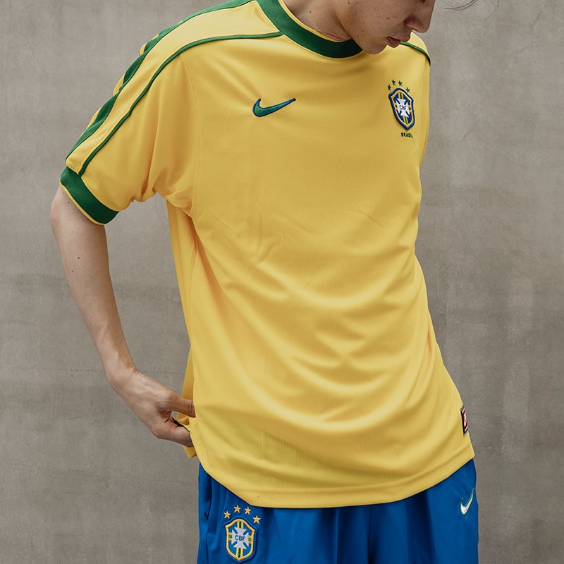 Brazil 1998 Reissue サッカーブラジル代表チームに敬意を込めて、ビンテージ感漂う1998年の公式ウェアをステッチの細部まで忠実に再現した『Brazil 1998 Reissue Apparelコレクション』が登場。 特徴的なチームカラーに加え、刺繍のロゴ、ビンテージのデザインなど、オリジナルモデルをステッチの細部まで忠実に再現。ブラジル代表チームが1998年に着用したNikeのユニフォームにオマージュを捧げ、サッカー界を席巻した最高のプレーヤーたちを称えている。ブラジルが誇る美しいゲームの歴史と、カナリーニョの愛称で親しまれるチームのDNAを感じられる仕上がり。 ブラジル代表リイシュー ジャージー ¥16,500(税込) 商品詳細はこちら ブラジル代表リイシュー ジャージー#9 ロナウド ¥16,500(税込) 商品詳細はこちら ブラジル代表リイシュー トラックジャケット ¥13,530(税込) 商品詳細はこちら ブラジル代表リイシュー トラックパンツ ¥14,190(税込) 商品詳細はこちら