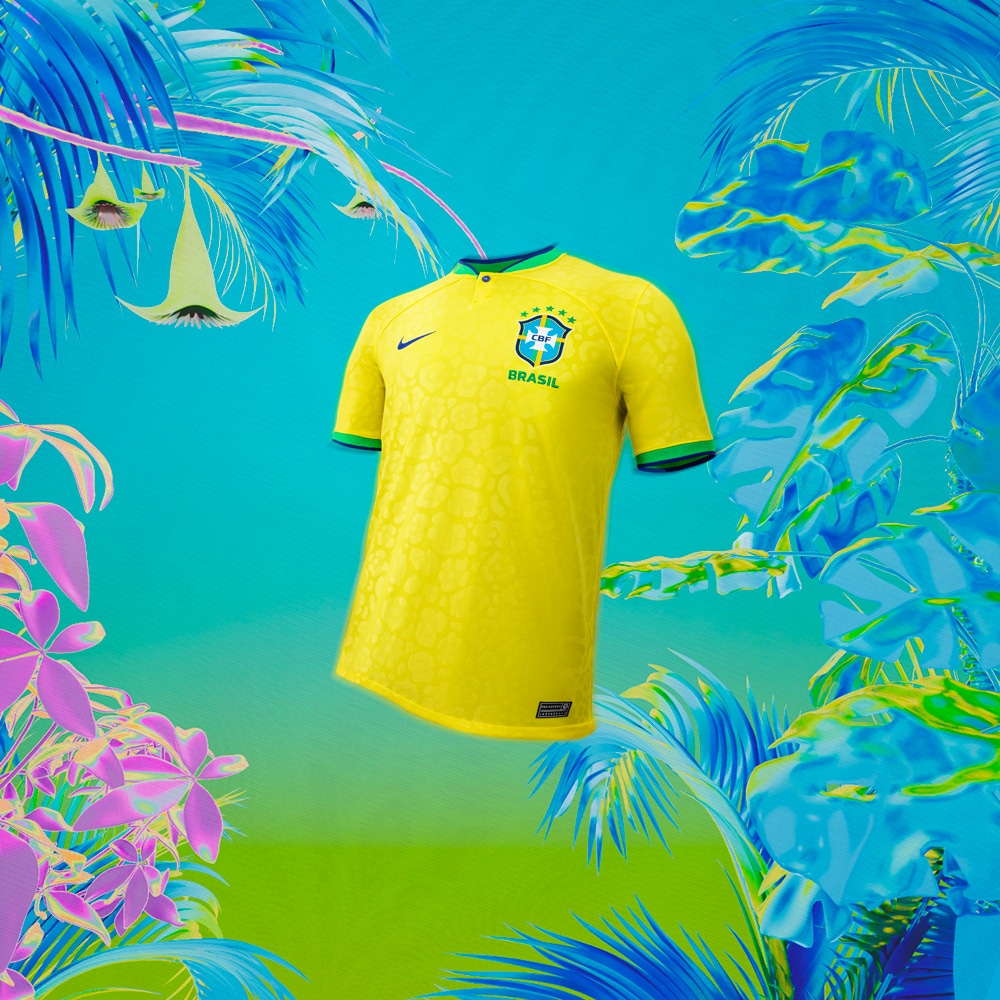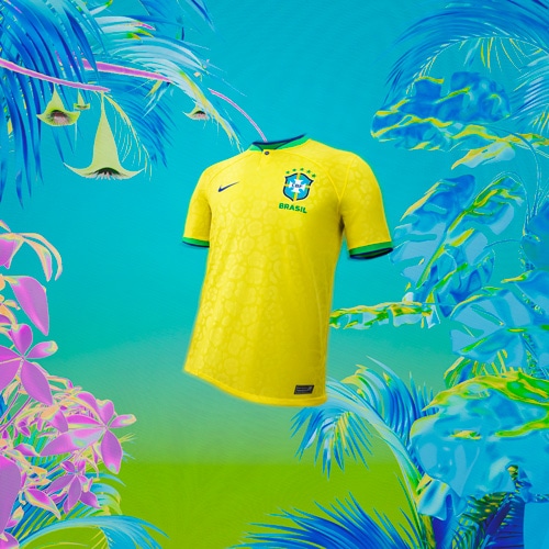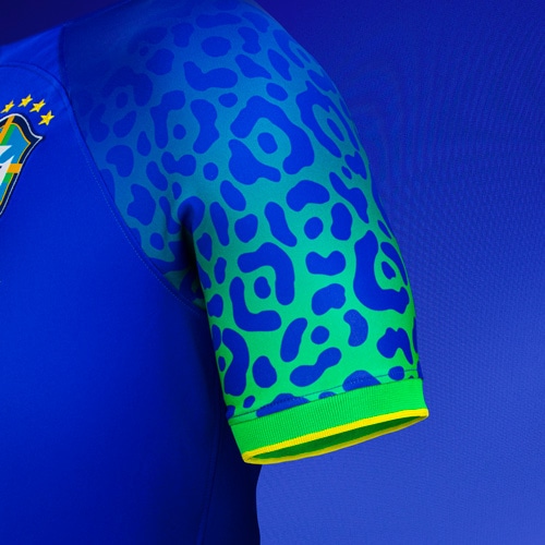 ブラジルのコレクションは、活力と勇気を表現しています。国の誇りとユースカルチャーをバランスよく取り入れたデザインは、ホームユニフォームの織柄やアウェイユニフォームの袖に用いられているブラジルのジャガー(オンサピンタダ)に象徴されます。オンサピンタダは、ブラジル国民の精神性や剛毅さを表現し、ブラジルチームのプレースタイルにも例えられます。ホーム、アウェイともに、ブラジルの国旗を表現するダイナミックイエロー、グリーンスパークとパラマウントブルーが好対照を描くように用いられています。ユニフォームの背中内側のオンサピンタダの爪を意味する「ブラジルの爪」や、ホームユニフォームの前立てのブラジル国旗の色など、ユニフォームには発見の要素が秘められています。
