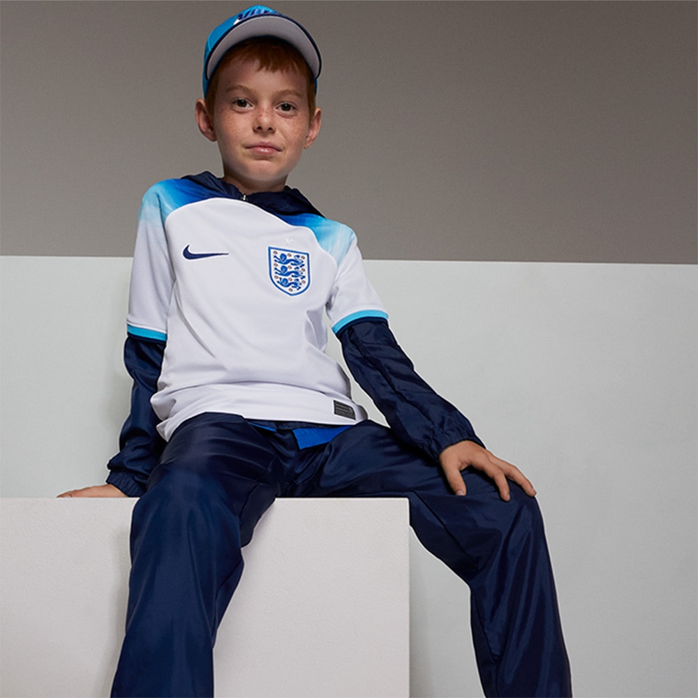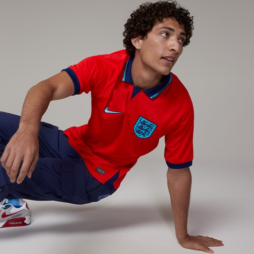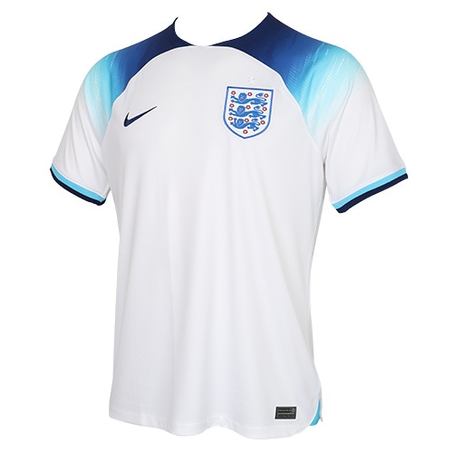 イングランドのコレクションは、チームの剛毅さをインスピレーションに、さまざまなデザイン要素で屈強な精神やチームが生み出すエネルギーを表現しています。ホームユニフォームには、象徴的なブルーボイドに若さのあるパターンや色のグラデーション、肩には工夫を凝らしチームの愛称である「スリーライオンズ」のグラフィックを、爪痕を表現するような鋭い角度やラインと重ねて用いています。アウェイユニフォームでは、チャレンジレッドの色使いを復活させています。またイングランドならではの首元のデザインも一新し、襟を立てたときには、ライオンのグラフィックの織りが見られるようになっています。