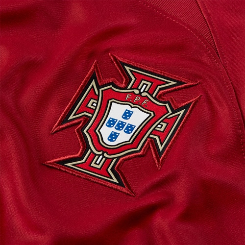 ポルトガルのコレクションは、同国のフットボールの新しい歴史の到来を感じさせるものとなっています。ペッパーレッド、ゴージグリーンにゴールドダートをあしらったホームユニフォームは、ポルトガル国旗を意識した色使いで斜めに切り替えを入れたことで、まるで国旗を身に纏ったようにも見せています。ポルトガルフットボール連盟 (FPF)のクレストと襟裏のパッチにあしらわれた天球儀が、国の誇りを表現します。アウェイユニフォームには、純白のユニフォームの中にもポルトガルチームがしっかりと目立つように、オフホワイトの一つであるセイルホワイトが用いられています。