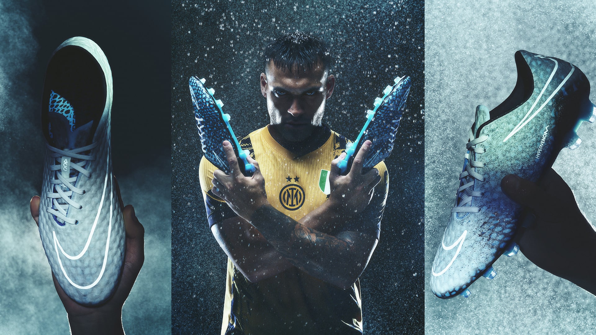 2015年に登場した、温度の変化に応じてアッパーのパターンが変化する“ハイパーヴェノム ファントム トランスフォーム”からインスピレーションを得た『Hypervenom Phantom RGN Transform "Hydra"』が登場。 水に触れるとアッパーのパターンが変わるデザインを採用しています。