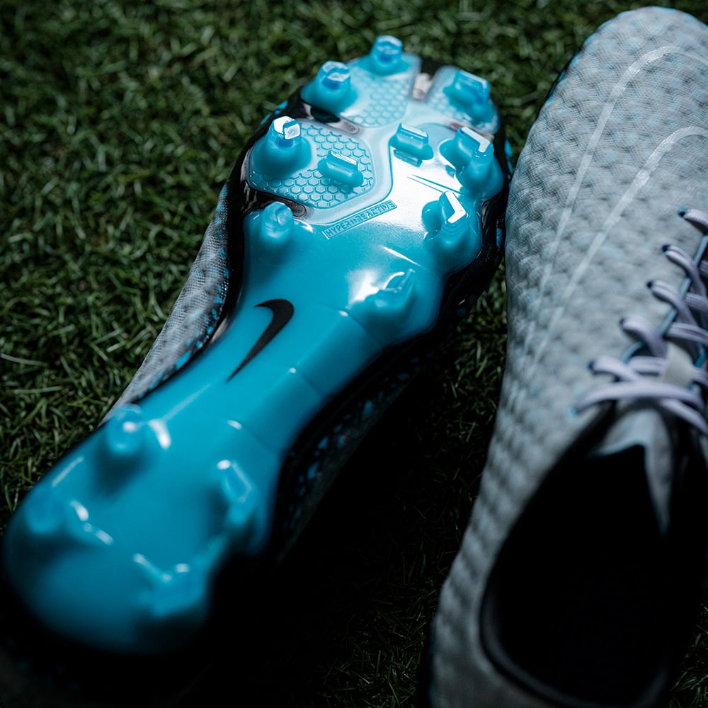 アウトソールには「ハイパーヴェノム3」の”ハイパーリアクティブ プレート”を採用。数種類の形状で構成されるコンビネーションスタッドが、カットイン、加速、素早いシュートを実現。円錐形のスタッドが素早いターンを、六角形のスタッドが力強い加速をもたらします。