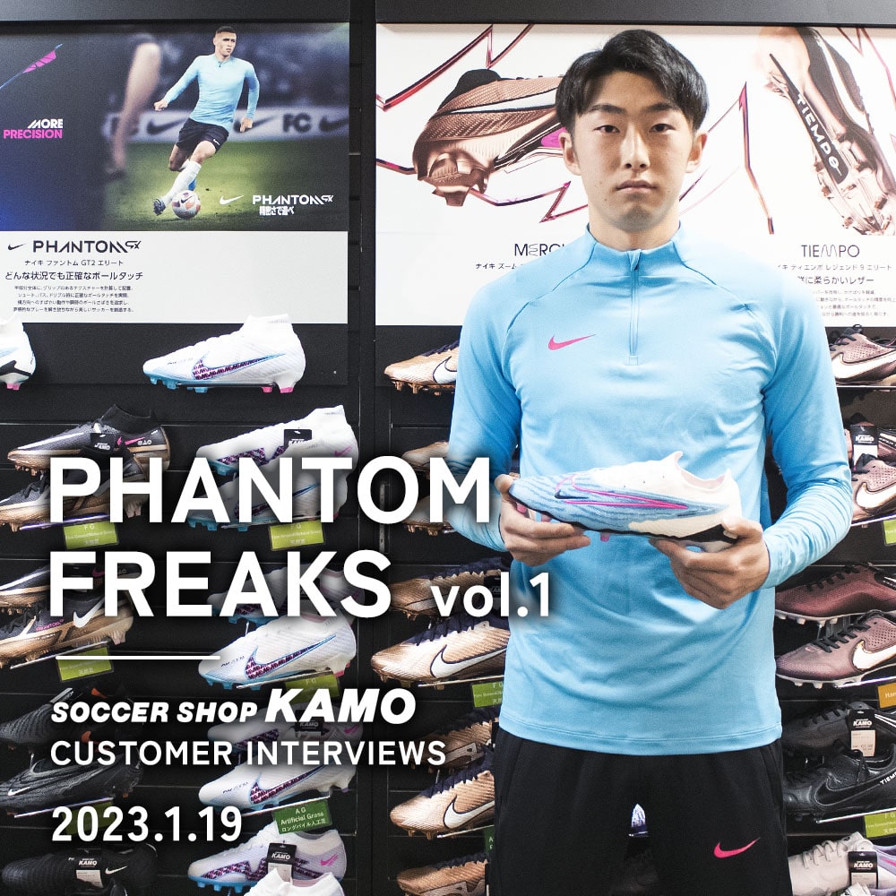 今回、サッカーショップKAMOのお客様の購買履歴を調査し、何年にも渡ってナイキのファントムを着用し続けてきた、ごく限られたお客様にコンタクトを取ったところ、驚くほど全国屈指の強豪校やクラブチームで活躍されているお客様の割合が多いことが分かりました。
