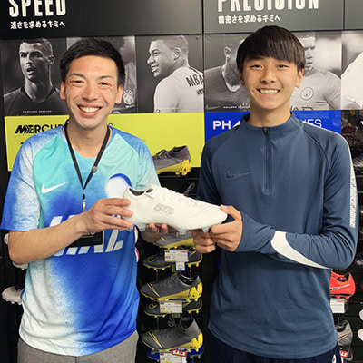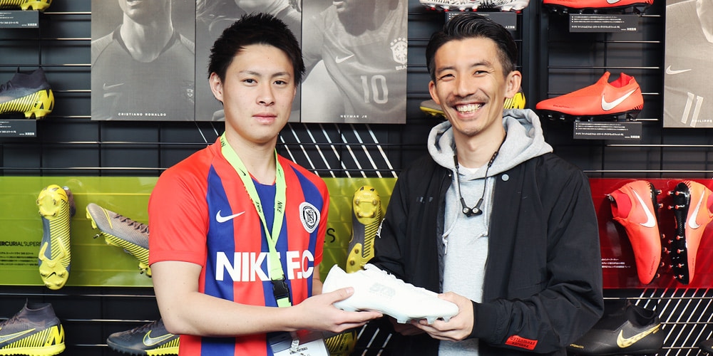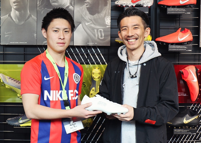 ロゴが刻まれたプレミアムスパイク『NIKE MERCURIAL PURE WHITE』を、松田さんにもお贈りしました。