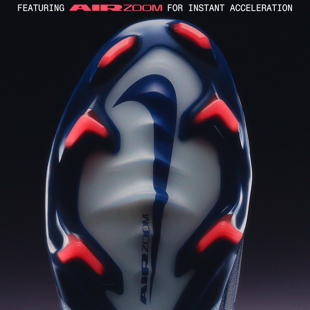 アスリートの“素足を感じるシューズが欲しい”という意見をいかし、フライニットアッパーの素材は5層から3層にして、約30%減らすことで足なじみを高め、これまでのナイキフットボールのフライニットを全面に使用したアッパーの中でも最も軽く薄いものに仕上がっています。