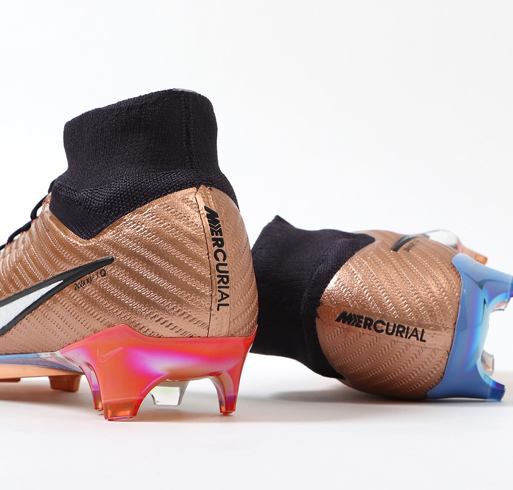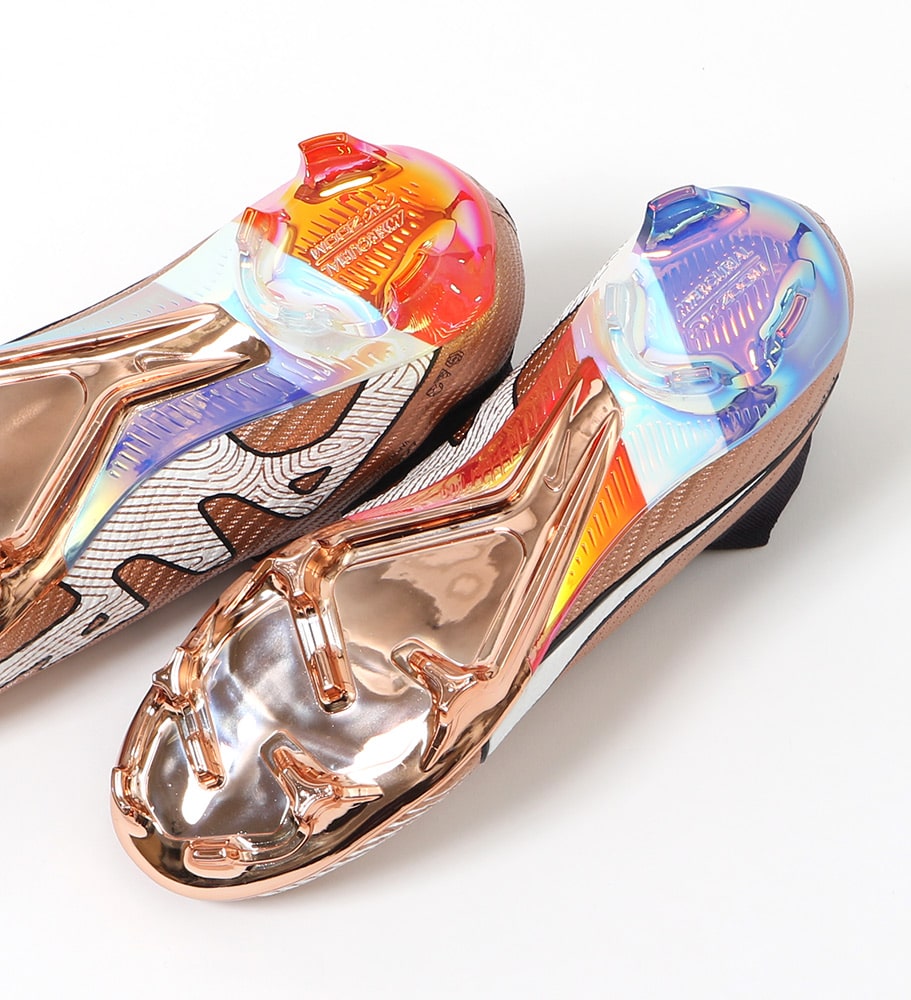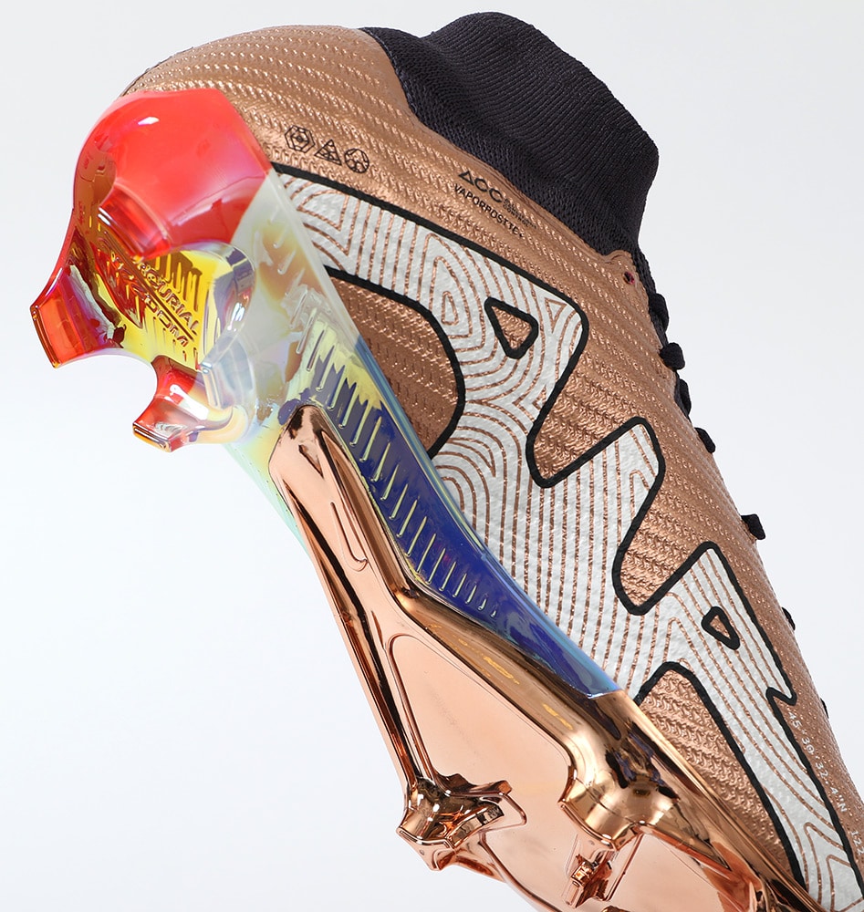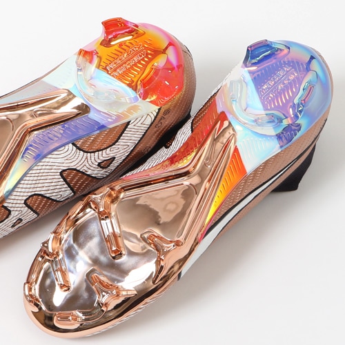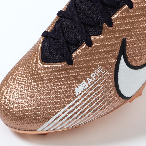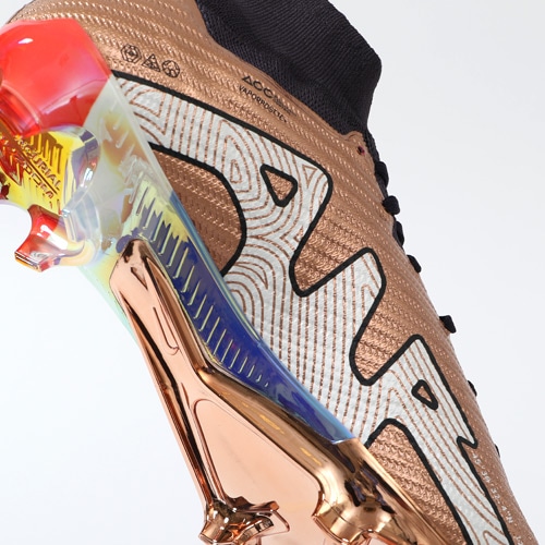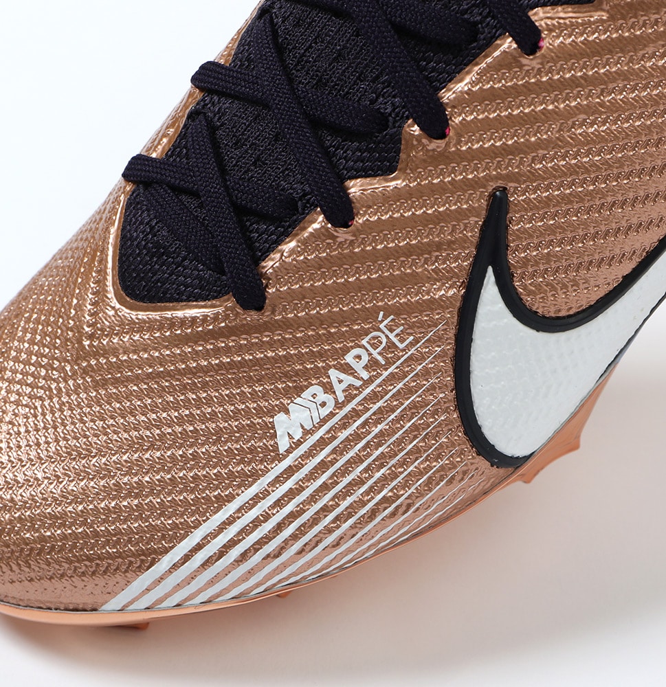 『Kylian Mbappe(キリアン・エムバペ)』は稲妻のような速さで相手を惑わしディフェンダーをかわし、無数のチャンスを生み出す。 攻撃的なプレーヤーにとって、スピードはチャンスに直結する最大の武器。 軽量でスピーディーなデザインがプレーに勢いとエネルギーを与える。 『AIR ZOOM MERCURIAL(エア ズーム マーキュリアル)』のハイカット形状「SUPERFLY(スーパーフライ) 9」のELITE(エリート)/ステートメントモデルFG(ファームグラウンド)対応スパイク。