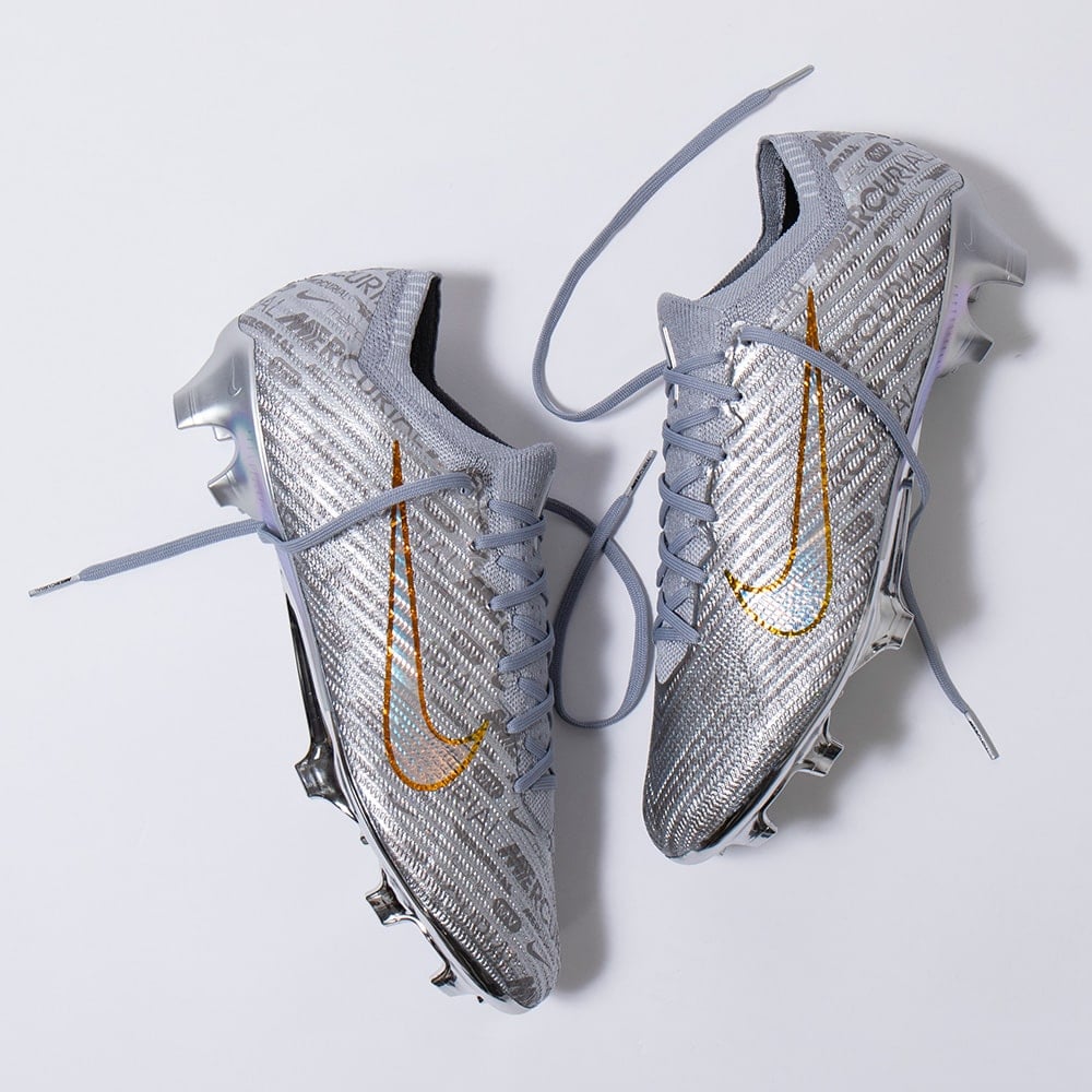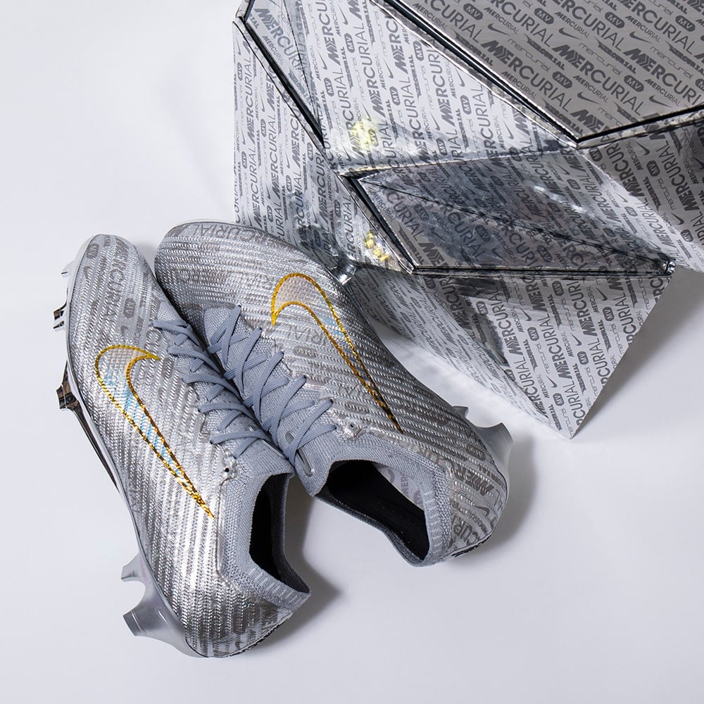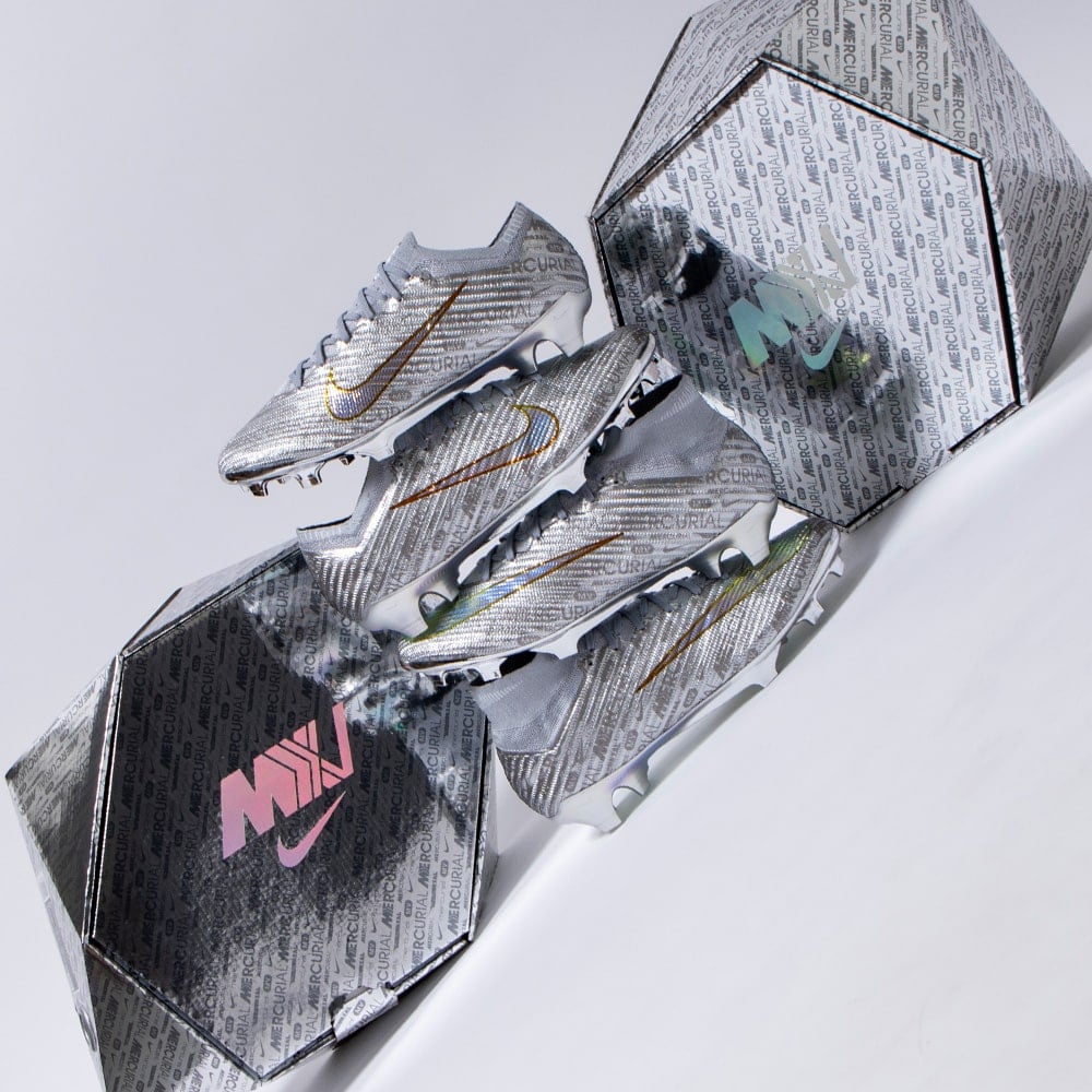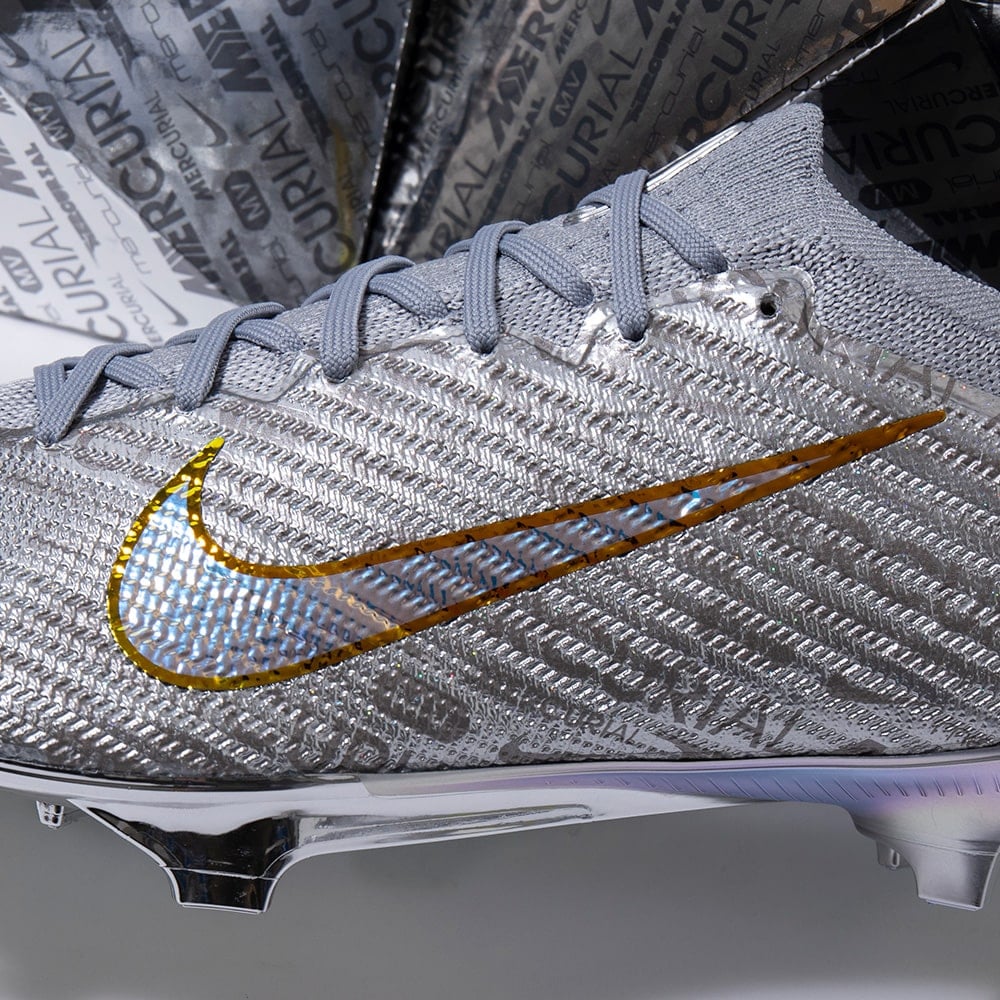 スピードを核に、イノベーションを使命に開発されたマーキュリアルは、何百万というプレーヤーを新たな高みへと引き上げてきました。代名詞とも言えるアイコニックなカラーで、これまでの功績を表現しています。Air Zoomユニットに配された稲妻には印象の強いクロムを使用し、こんな問いかけを込めました。次の25年間、あなたの思い出にはどんな瞬間が刻まれるでしょうか?
