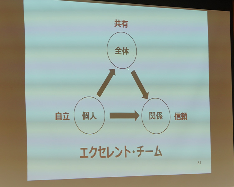 『チームビルディング チームの中の個人の役割』をテーマに講義。