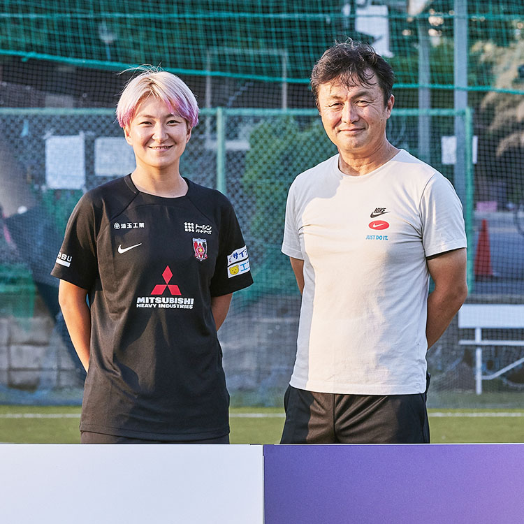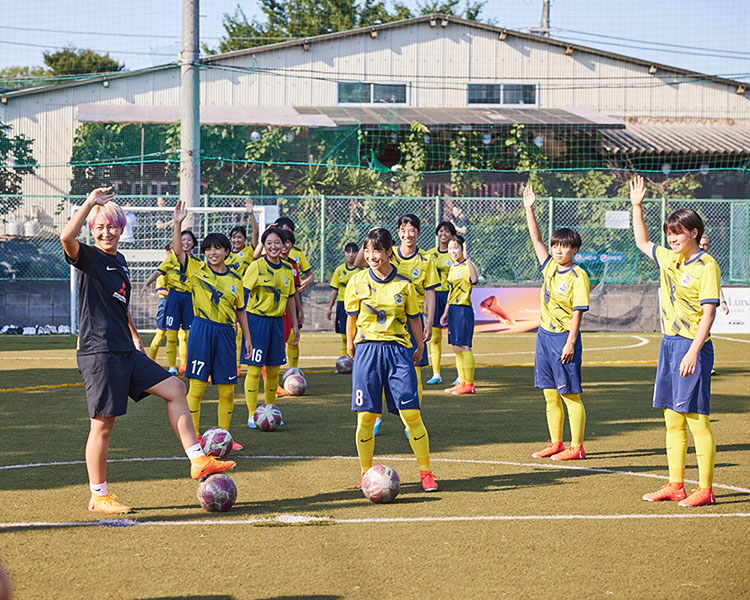オンピッチの講師には、日本サッカー協会公認S級ライセンスを所持する三菱重工浦和レッズレディース監督の楠瀬直木氏と、三菱重工浦和レッズレディース所属でWEリーグの初代得点王でもある菅澤優衣香氏をお招きし、クリエイティブな思考がプレーに及ぼす影響などを実際の練習の中で教えていただきました。