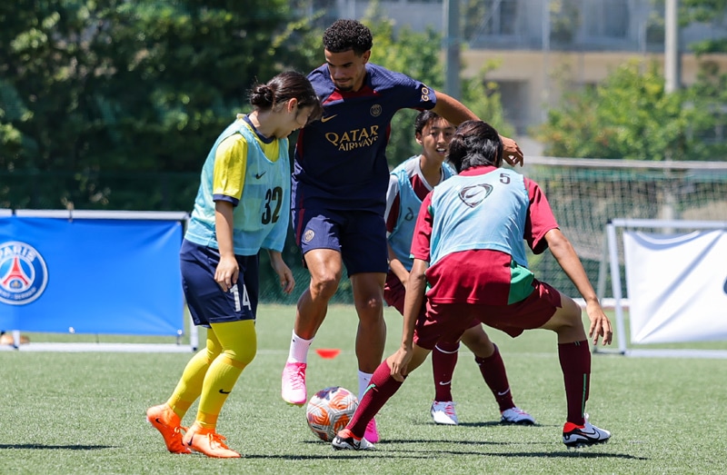 パリ・サンジェルマンFCの選手達と生徒達との一体感も生まれ、特別な時間を演出していた。