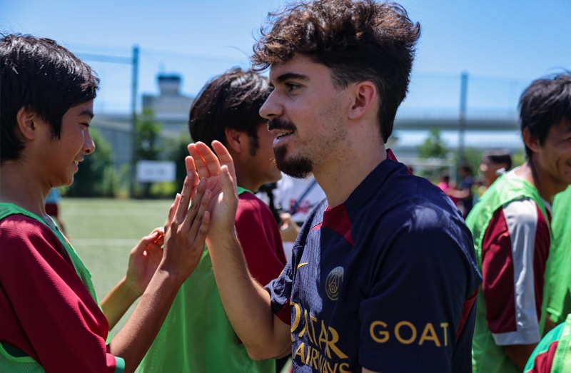 パリ・サンジェルマンFCの選手達からも生徒達へ積極的に声をかけ、