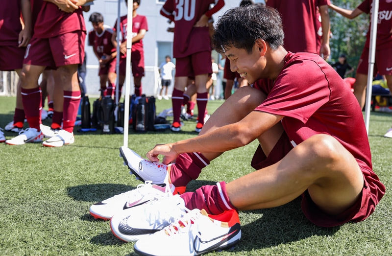 NEWカラーのTiempoに初めて足を入れる選手からは、嬉しさとこれから始まるトレーニングへの期待に、自然と笑顔がこぼれる。