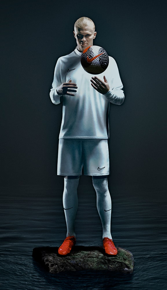 イメージしたのはハーランドのノルウェーのルーツと、彼を計り知れない存在へと鍛え上げた揺るぎない献身。 ファントムの優れた精度を、ハーランドを称えたユニークなデザインディテールで強化。 キラリと輝きを放つベースプレートとレッドのカラーが、接近をサイレンのように警告する。 脅威の決定力を持つべくして生まれた、次世代プレーヤーのためのデザインだ。