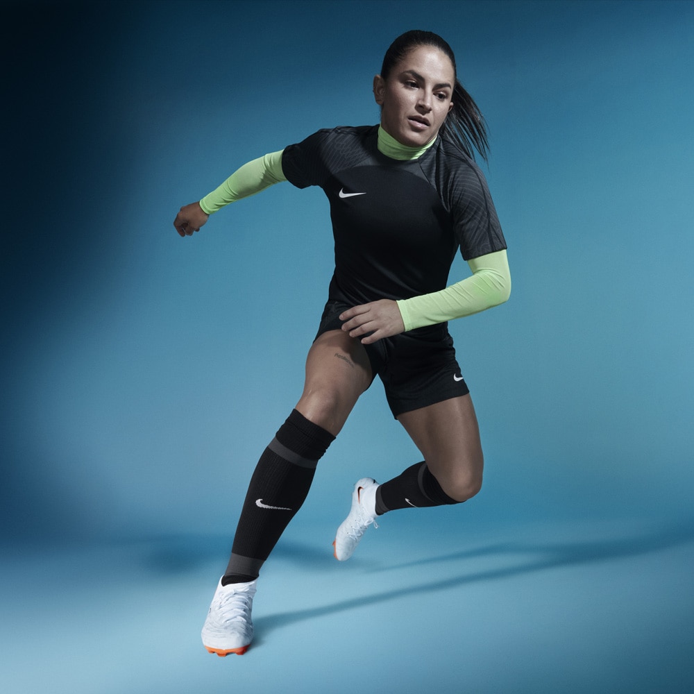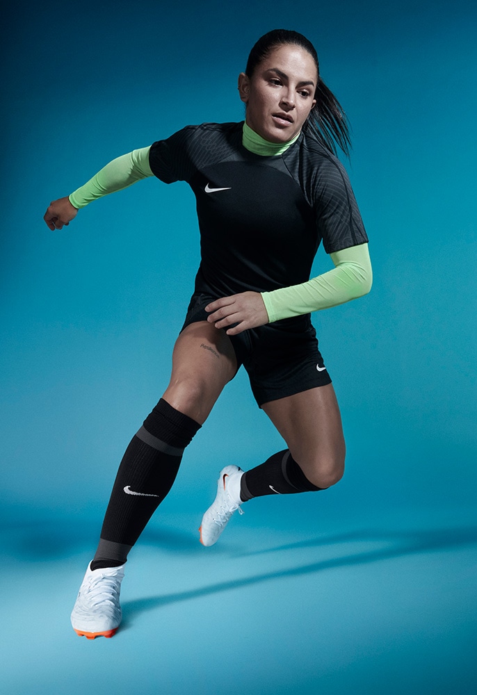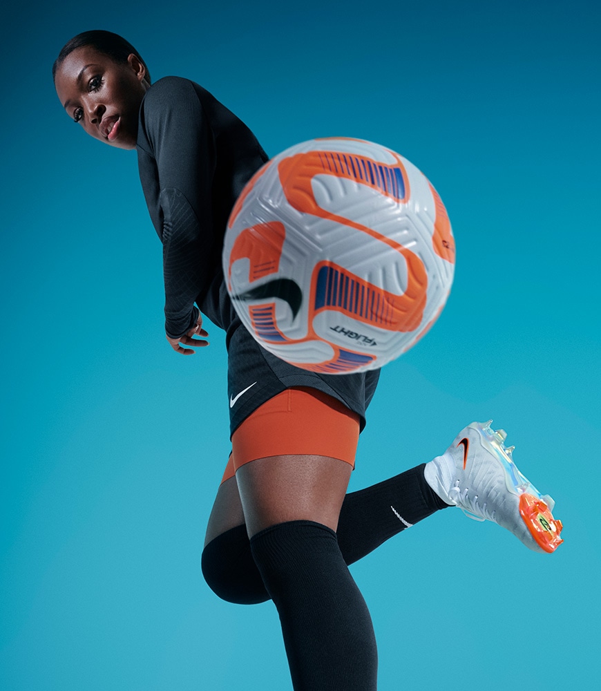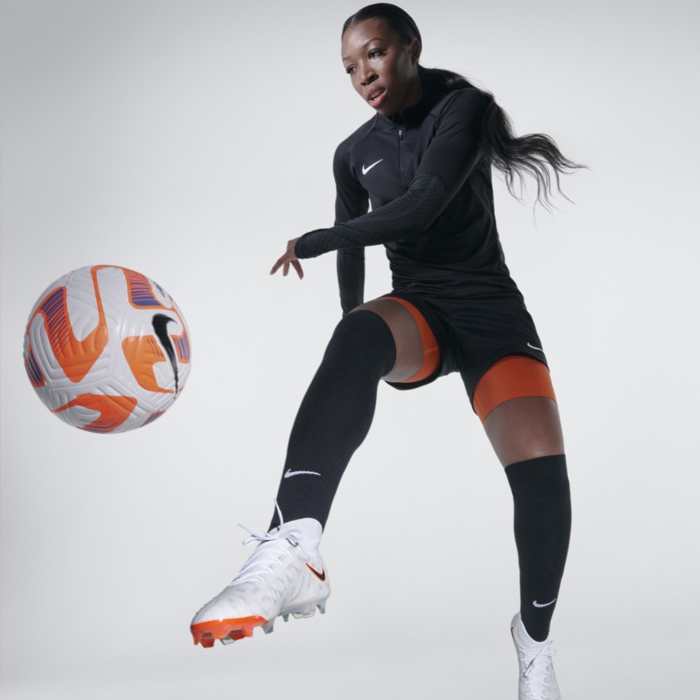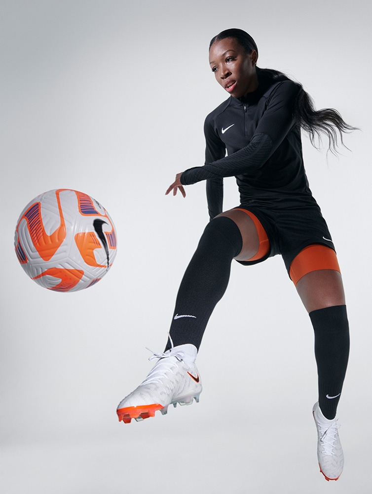 粘着性のあるNike Gripknit素材で、ボールタッチを向上。 Gripknitで最初の2本のシューレースを覆うことで表面積を拡大し、さらに広い面でのボールコントロールを実現。 足の形状にぴったりとフィットし、湿度の高い環境でも乾燥した環境でも同じグリップ性を発揮。 マイクロモールディング加工のテクスチャーとGripknitにより、スパイクが足にフィットし、ボールタッチの精度がアップ。