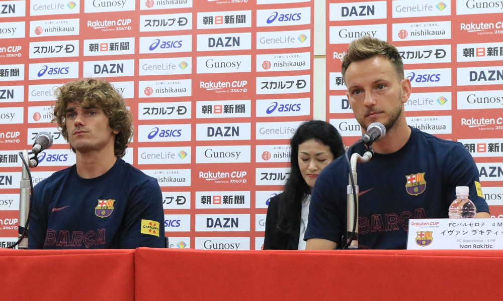 会見には「ラキティッチ」選手と加入間もない「グリーズマン」選手が出席。