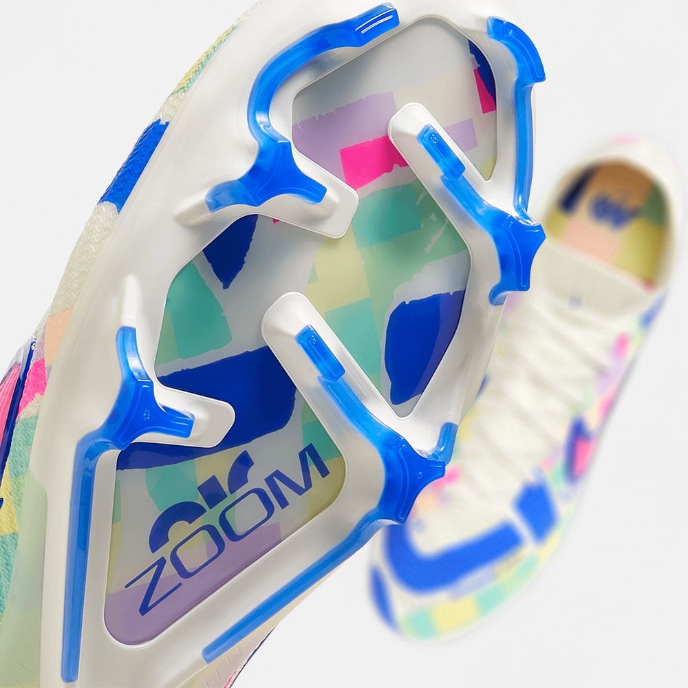 大胆なデザインの「スーパーフライ 9 エリート FG」で、瞬時にフィールドを支配しよう。サッカー専用に作られたZoom Airユニットを搭載し、足の甲部分にはグリップ加工を施して抜群のボールタッチを実現。試合終了間際の最も重要な時間帯に、優位に立つことができます。爆発的な加速を体感しながらフィールドを駆け回り、俊敏で軽快なプレーで存在感をアピールできるデザイン。スピードをもたらすのはAirのパワー。