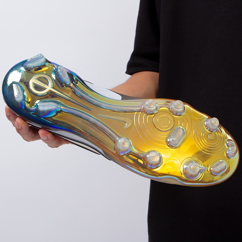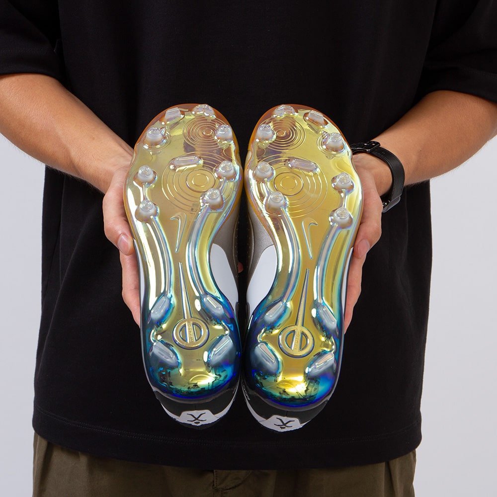 スムーズな動きを促すトラクションパターンを特徴としています。スタッドは巧みなカットを支える円柱形のものを主体に、前足と踵にはブレードやV字型のものを用い、必要なときには爆発力のあるカットができ、軽量なプレートとクラシックなトラクションパターンで最適なカットを実現しながら、足元の軽さも確保しています。