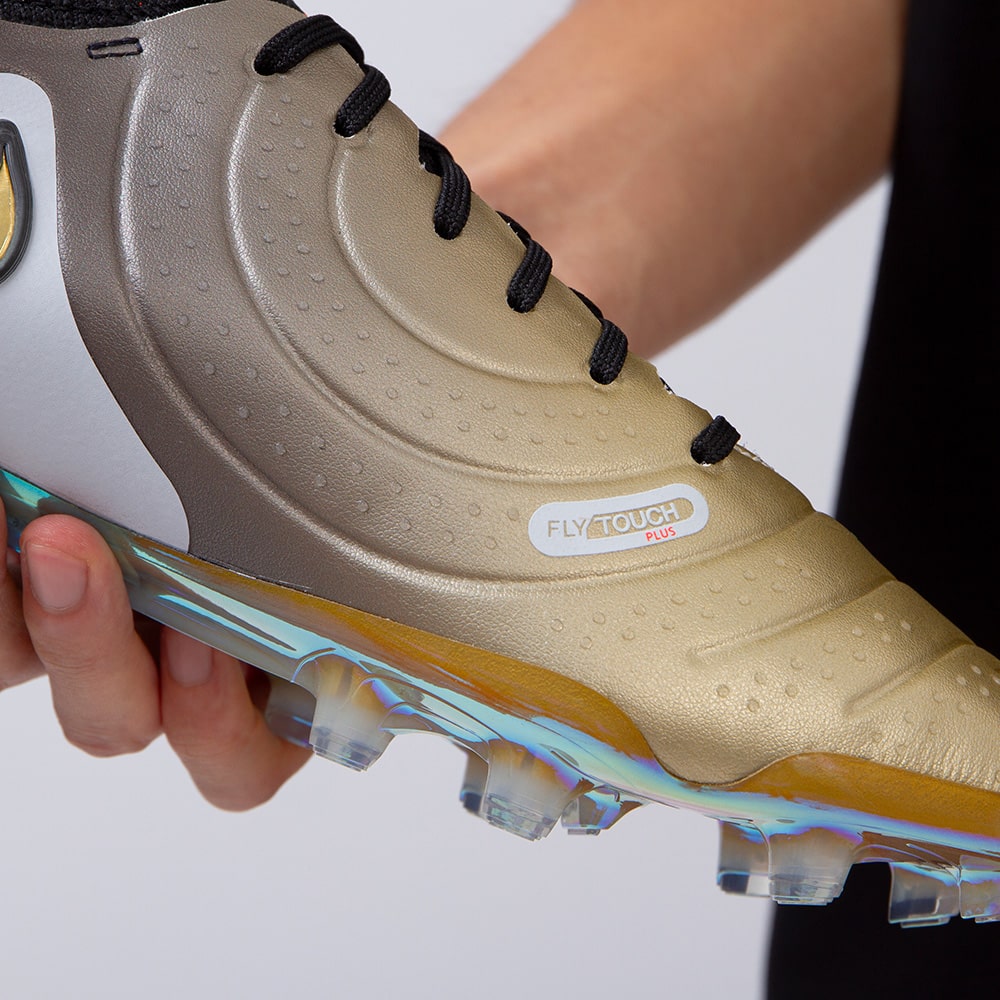 最新イノベーション「Fly Touch Plus(フライタッチプラス)」エンジニアードレザー はティエンポのために作られた新しいレザーで、柔らかさ、軽さ、耐久性をもたらし、より優れたコントロールが可能です。天然皮革のように伸びすぎることが無くピッチや天候に関わらず、アスリートの足なじみ良い形のままで長い間維持され、軽量かつ通気性に加えて快適さも提供します。